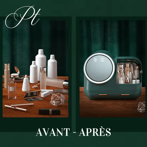 Boîte de rangement cosmétique avec chargement USB et anneau LED